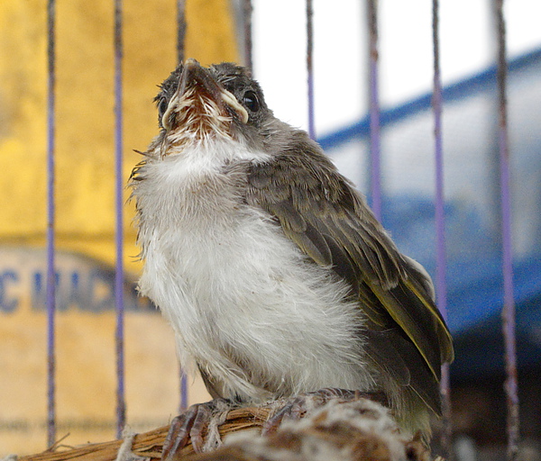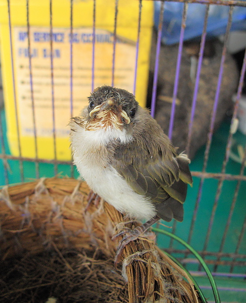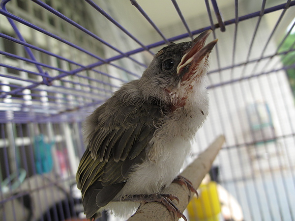 我們急忙找了一個籠子把鳥先救出來,還好家裡面還有以前養蜜袋鼯的小籠子.
