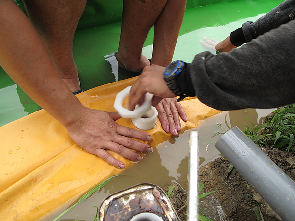 而防水帆布則是不讓流水往土裡滲透的阻隔體~