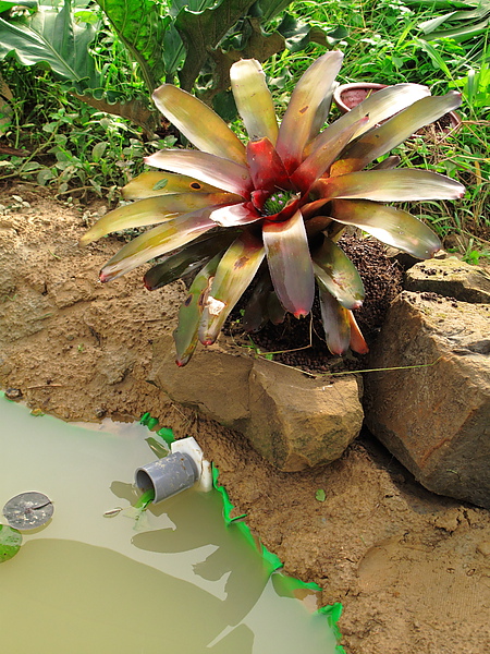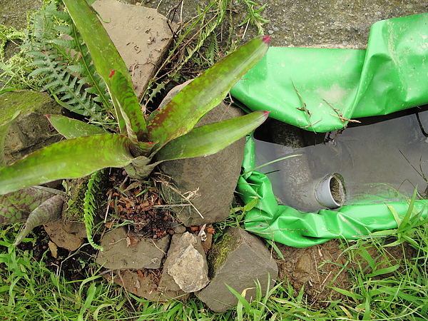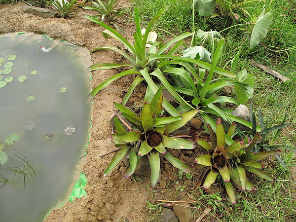 擺放上去以後,可以直接用泥土把旁邊的間隙補起來,以防日後雨水沖刷,會慢慢把適合種植鳳梨的介質沖走.