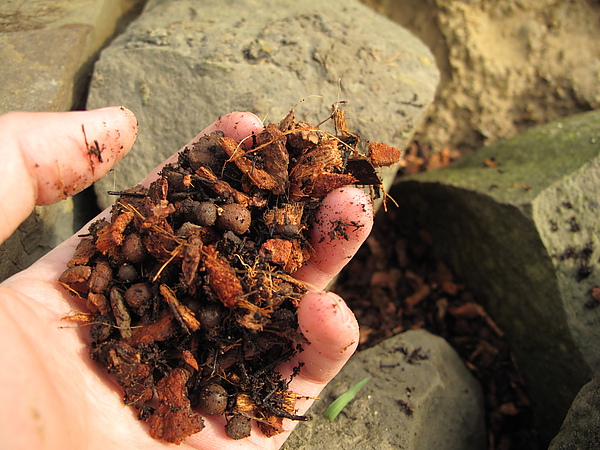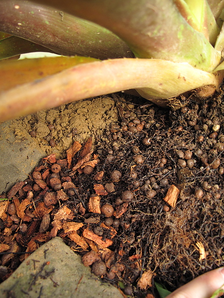 然後底部先鋪上厚厚一層的介質 (還記得嗎? 蛇木,泡石,椰塊,樹皮 1:1:1:1混合)