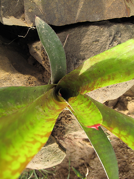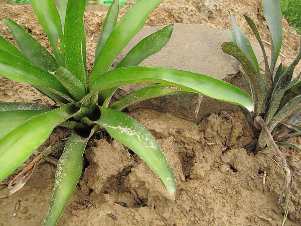 旁邊石縫的間隙中,都可以適量塞入一些介質,好讓鳳梨的根部再往外伸展出去.