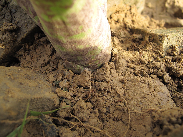 由於是很成熟的成株,所以根部抓住了原有的種植介質.