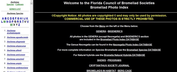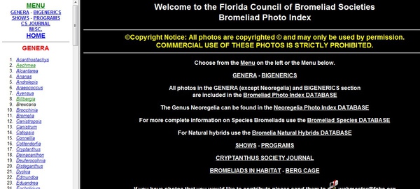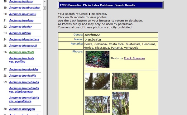 一般來說以FCBS為關鍵字的話,第一個搜索結果會是他的首頁,而第二個會是它的品種圖片資料庫,想要偷懶的話可以直接點擊第二個的Bromeliad Photo Index