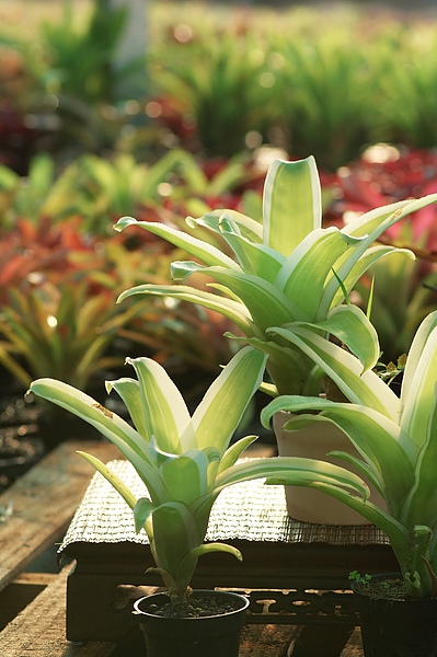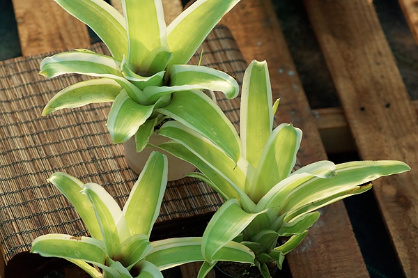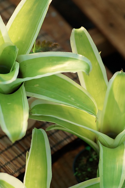 下面這株晶瑩剔透的鳳梨是水塔花,粉嫩的青綠很討我歡心,在我走來走去選今日主角的時候,還不時擺動它鑲白邊的綠翼.