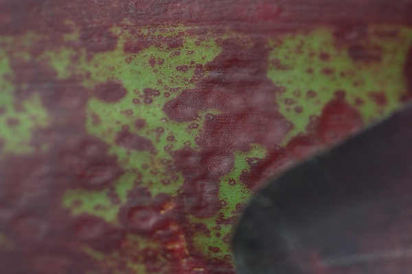辨別特點: 中型偏大款,葉面呈特殊髒污色,有中國潑墨畫的感覺,葉墨綠噴出棗紅亂斑,部分斑有立體凹紋.
