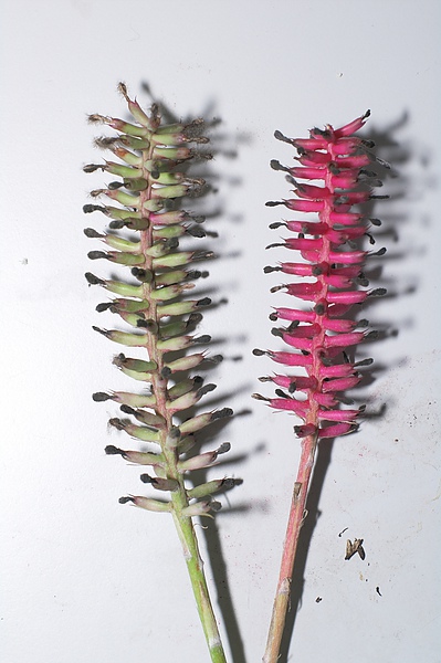 Aechmea mertensii的花,拔一部分下來,花瓣頂部...也是刺