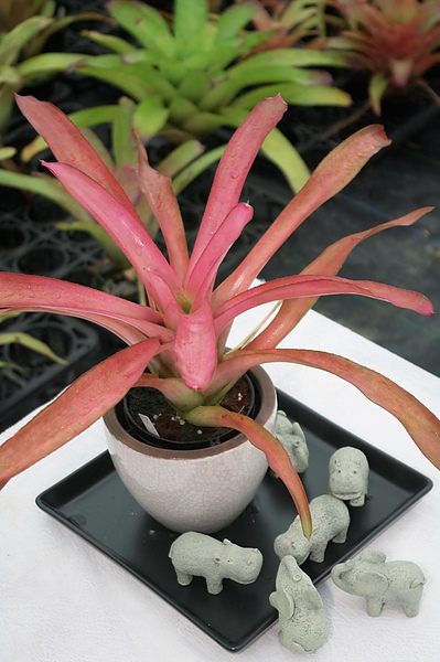 辨別特點: 中型款,葉面亮粉紅,花期前會全開葉.
