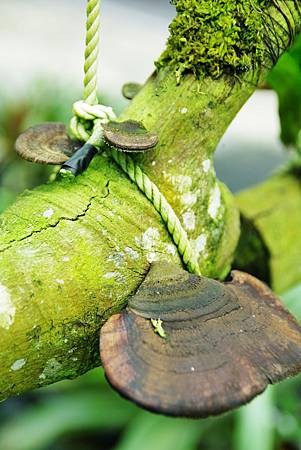 綁的材料用棉線即可,黑色/白色/綠色都是不錯的選擇,棉線在長時間後會掉落/分解/或被苔蘚覆蓋,比較不會有人為的痕跡,而積鳳在一段時間過後,根系也會逐漸有能力直接抓附在枝幹上.