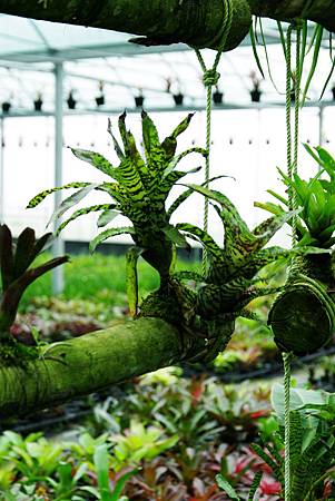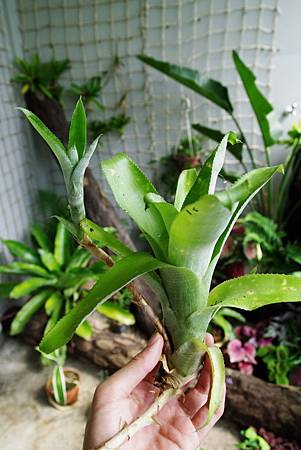 以下圖這走莖式成叢的水塔花為例,如果以小盆種植,建議讓花盆垂釣在空中,使走莖能夠延著盆邊自由彎曲蔓延.
