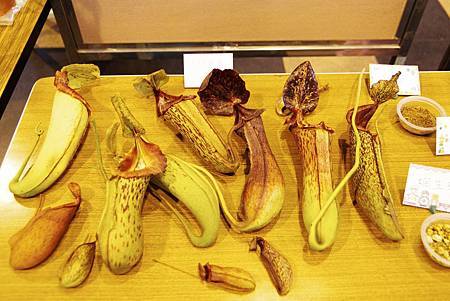 食蟲植物介質區,不像其他馬虎的展覽,所有介質都一一以實體陳列.